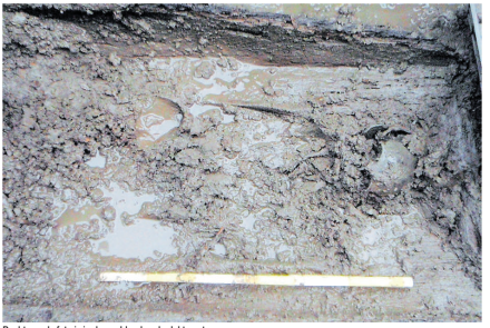 De boomkist is ongeveer 2 meter lang en herbergt het skelet van een man. Ingenieursbureau MUG begeleide het archeologisch onderzoek. Uit verricht ‘C14-onderzoek’ van het skelet blijkt dat de man overleden is tussen 663 en 766 AD.